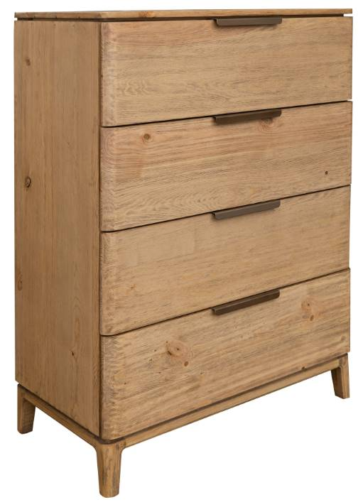 Quatre tiroirs. Queue d'aronde anglaise sur les façades des tiroirs en bois 100% massif. Patins en acier à sortie totale Hafele.