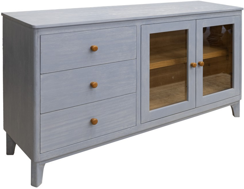 Trois tiroirs. Queue d'aronde anglaise sur les façades des tiroirs en bois 100% massif. Patins en acier à sortie totale Hafele.