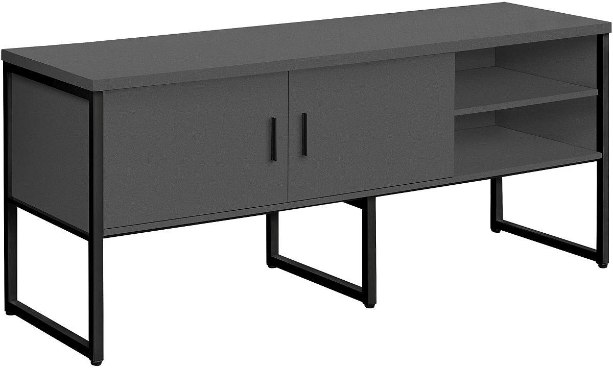 Un grand espace de rangement avec des étagères fixes sur toute la longueur de la crédence et un placement flexible des portes de rangement qui peuvent être assemblées des deux côtés pour les documents, le matériel d'étude et les appareils électroniques