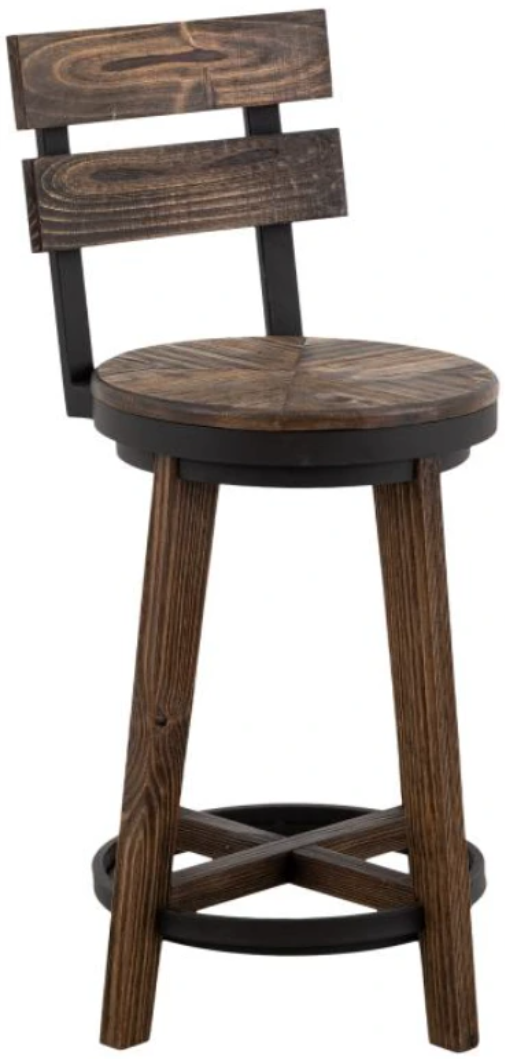 The Dutton stool collection uniquely combines rustic and industrial design elements. Its round seat, made from various wood species, features a natural wood grain that adds warmth. A metal trim around the edge enhances durability and adds a modern touch. The metal footrest encircles the four sturdy wooden legs, providing stability and comfort.En savoir plus