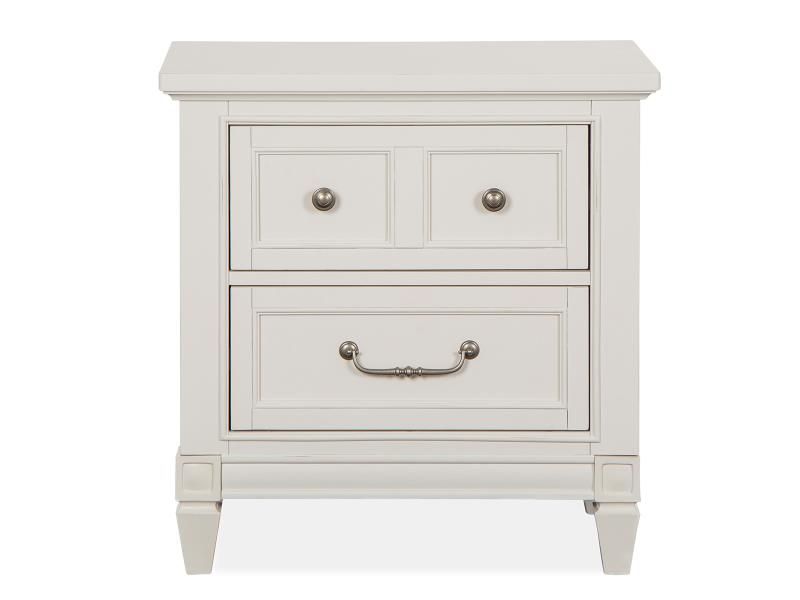 La table de chevet Magnussen Home® Willowbrook comprend 2 tiroirs, une gestion des fils et des tiroirs teintés avec queue d'aronde anglaise à l'avant et anglais à l'arrière. Charmant et chic, Willowbrook combine une finition blanche coquille d'œuf douce et décontractée avec des formes classiques pour créer une atmosphère apaisante qui détend l'esprit et le corps.En savoir plus
