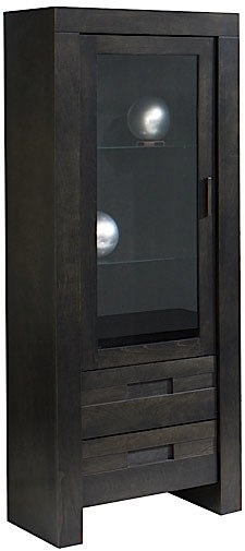 Cette armoire d'appoint est munie d'une porte vitrée avec deux tablettes ajustables en verre, de deux tiroirs avec ''coulisses quadro'' et d'une finition en placage de merisier.Read More