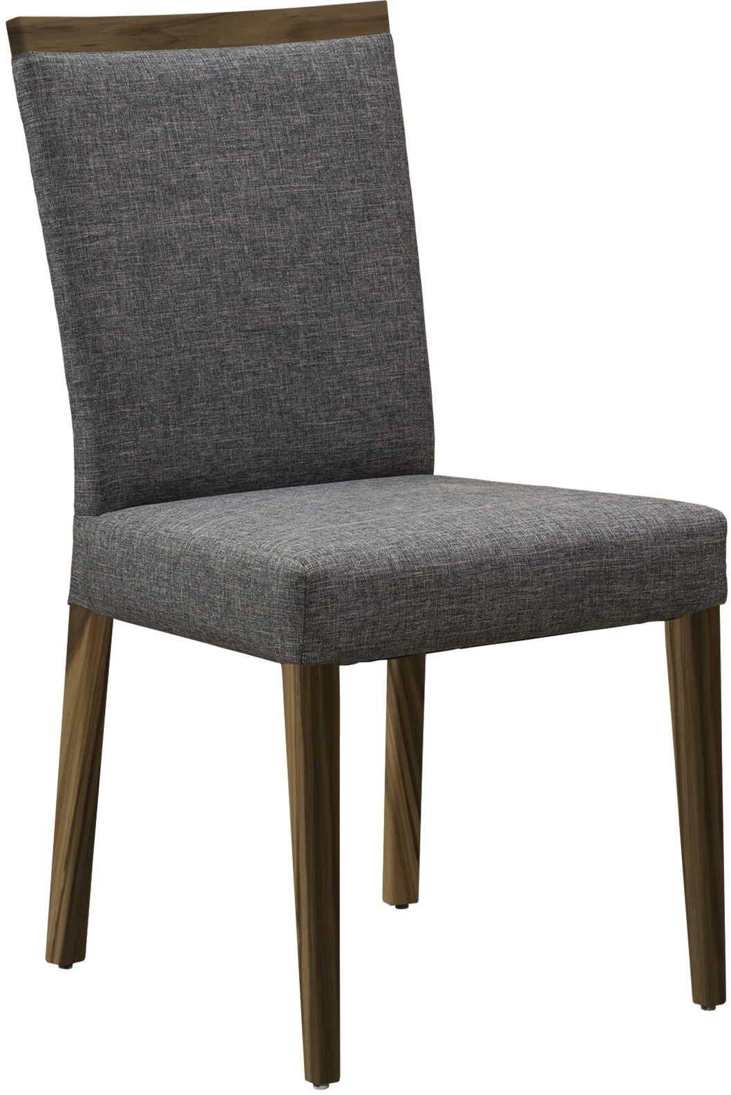 Cette chaise est dotée d'un dossier rembourré, d'un coussin de 2 po et elle est fabriquée en noyer massif.Read More