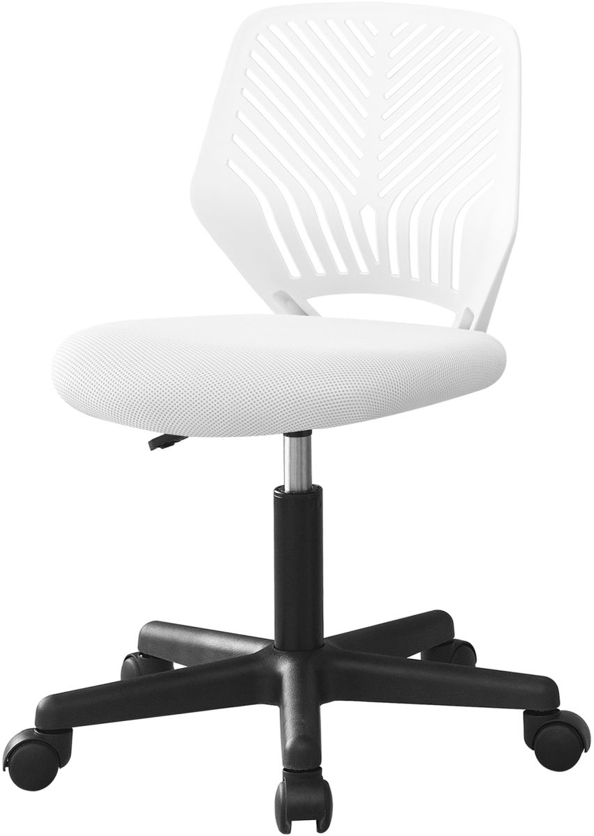 Un levier sous le siège permet d'ajuster la chaise à la meilleure hauteur pour la taille de votre enfant. Un siège pivotant et une base à cinq branches avec des roulettes rendent le déplacement de la chaise facile et amusant! Vous et votre enfant donnerez à cette chaise de bureau juvénile, de bonnes notes pour son soutien, son confort et son fonctionnalité.