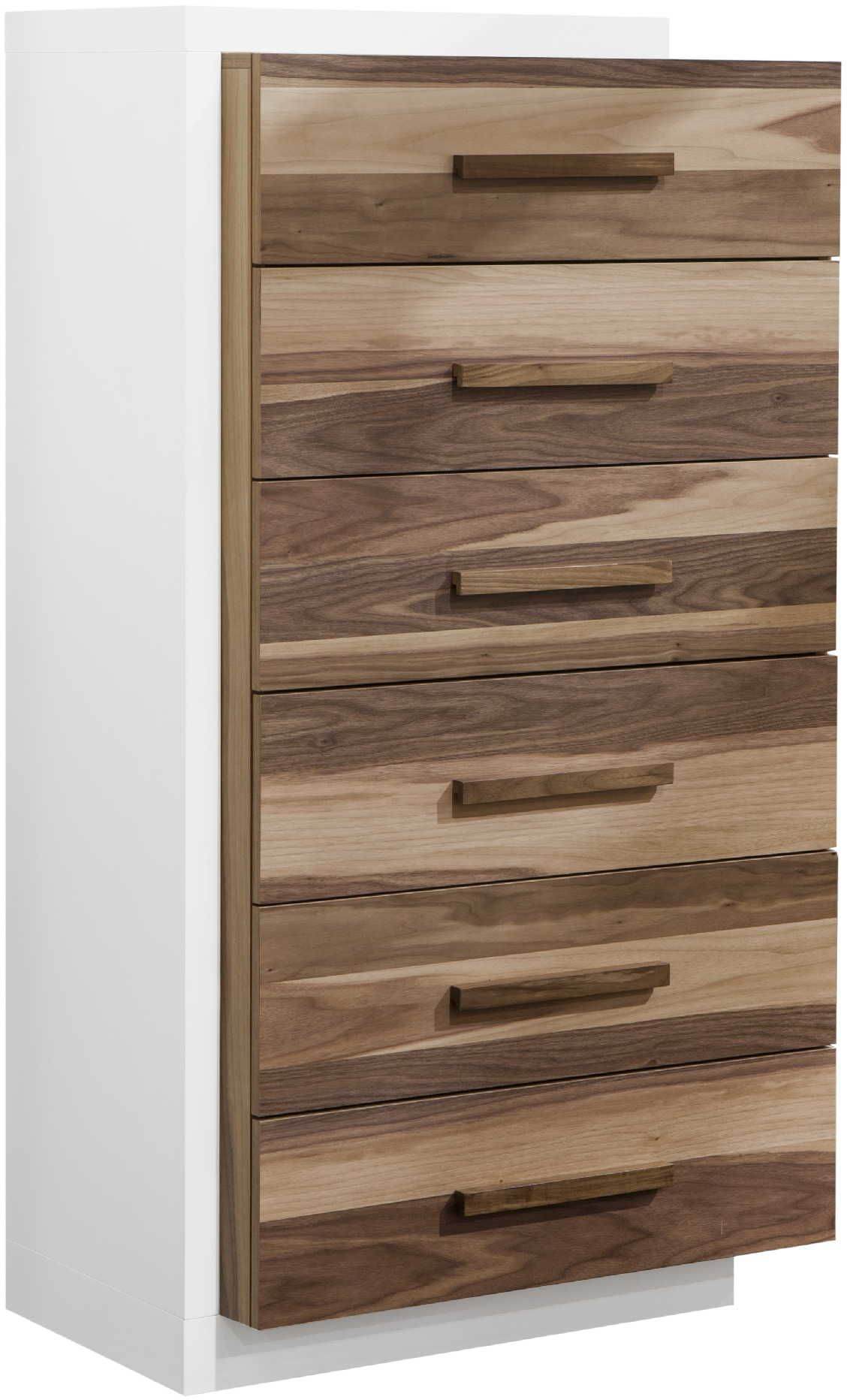 Cette commode comporte six tiroirs avec des ''coulisses quadro'', une finition de placage en noyer et elle est disponible dans plusieurs couleurs.Read More