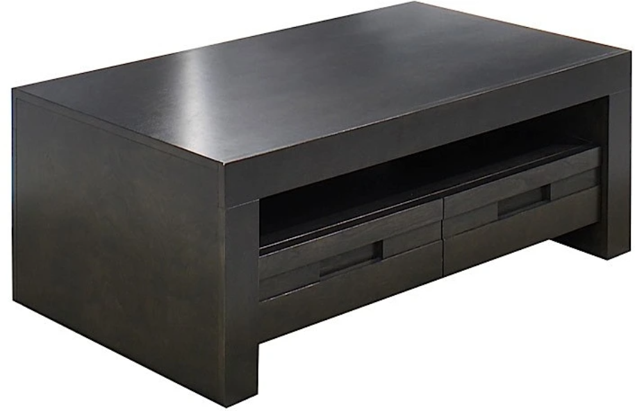 Cette table de centre rectangulaire comprend deux tiroirs avec ''coulisses quadro'', un fini de placage de merisier et elle est disponible dans plusieurs couleurs.Read More