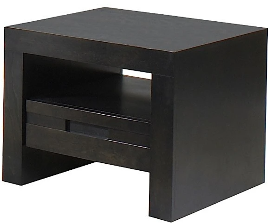 Cette table de bout carrée est dotée d'un tiroir avec des ''coulisses quadro'', d'un fini de placage de merisier et elle est disponible dans plusieurs couleurs.Read More