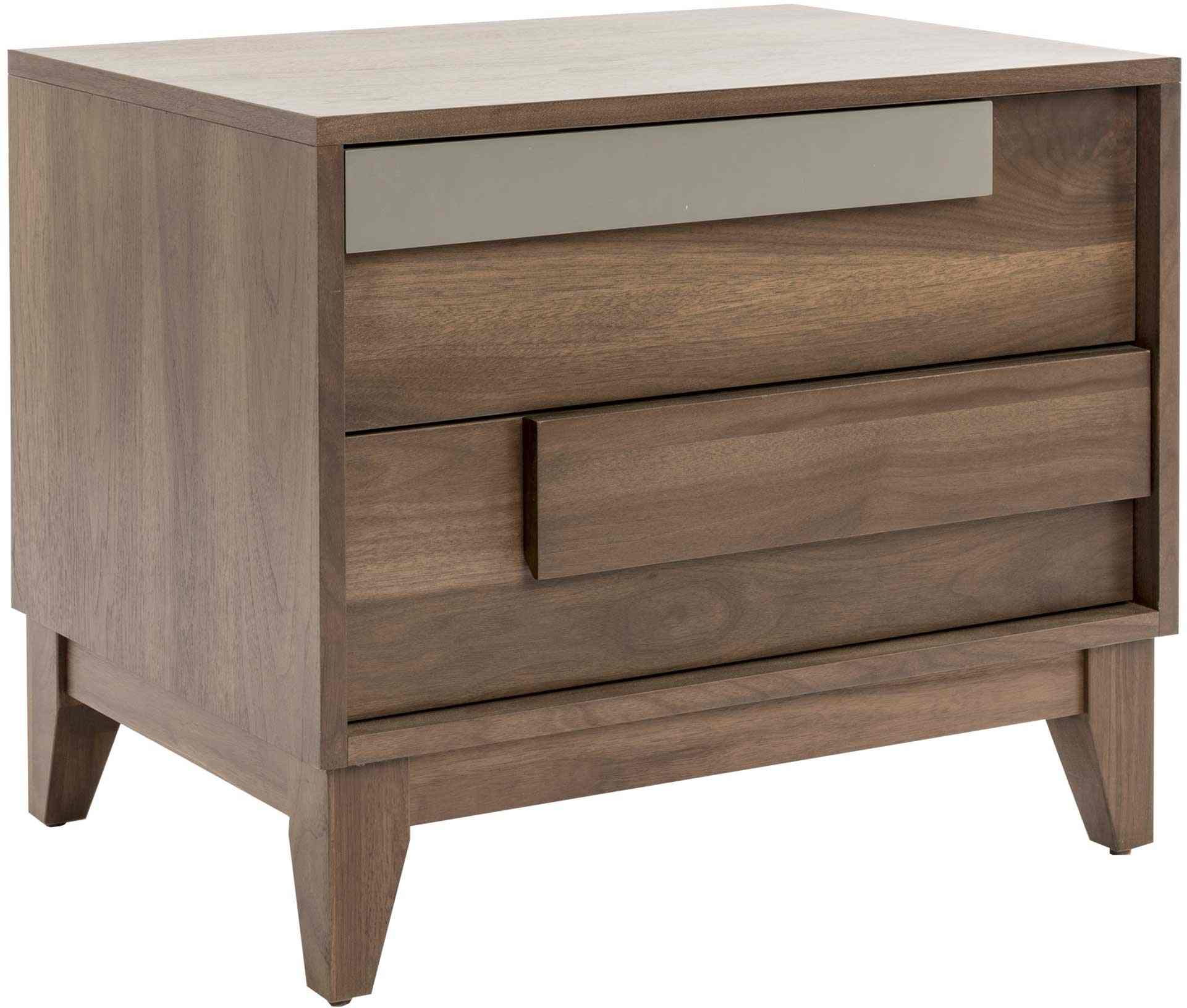 Cette table de nuit comporte deux tiroirs avec des "coulisses quadro", une finition en placage de noyer et elle est disponible dans plusieurs couleurs.Read More